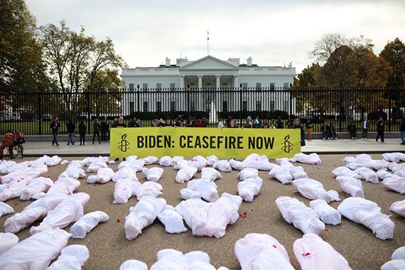 Amnesty International held a demonstration in Washington, DC uplifting civilian lives lost since October 7 and calling for an immediate ceasefire.
