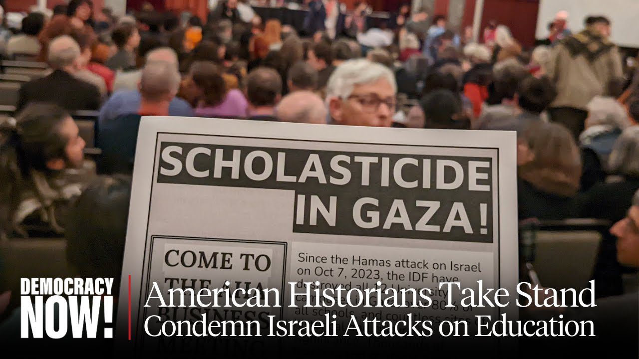 We begin today’s show with a vote Sunday by the oldest learned association in the United States, the American Historical Association, which was founded by an act of Congress, to approve a “Resolution to Oppose Scholasticide in Gaza.”