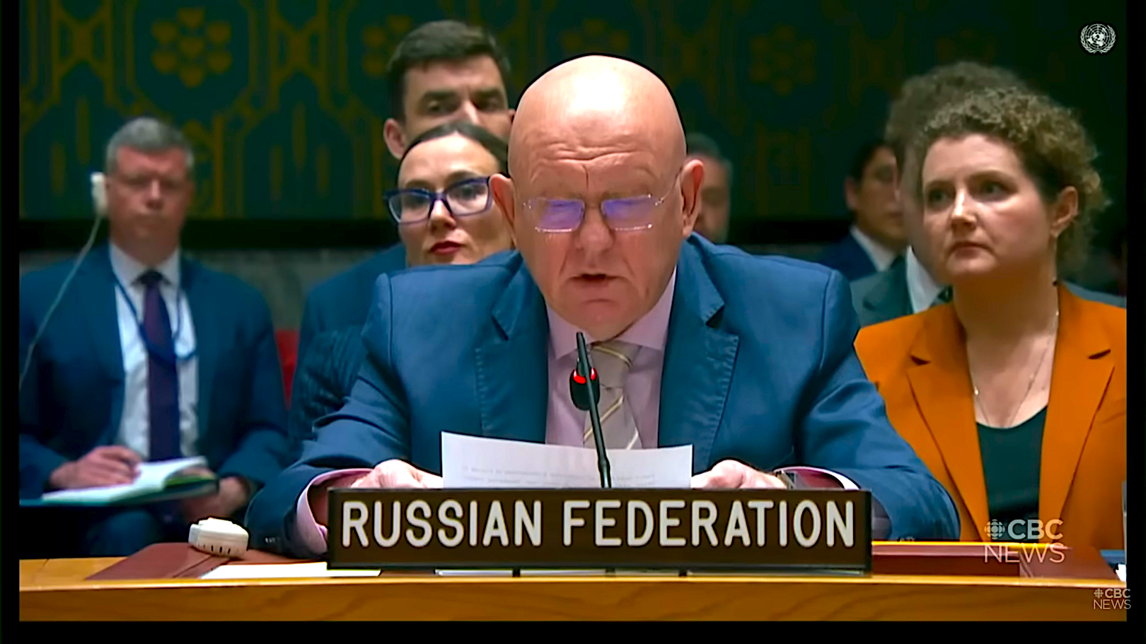 Russian Ambassador Vasily Nebenzya at U.N. Security Council on March 11, 2026. (CBC screenshot from U.N. TV feed).